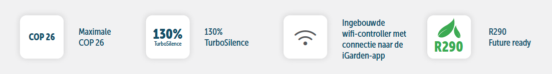 De geavanceerde TurboSilence-technologie verhoogt ook de verwarmingsprestaties met wel 130%, waardoor het zwembad zelfs onder de meest veeleisende weersomstandigheden snel wordt verwarmd, terwijl het geluidsniveau opmerkelijk laag blijft.